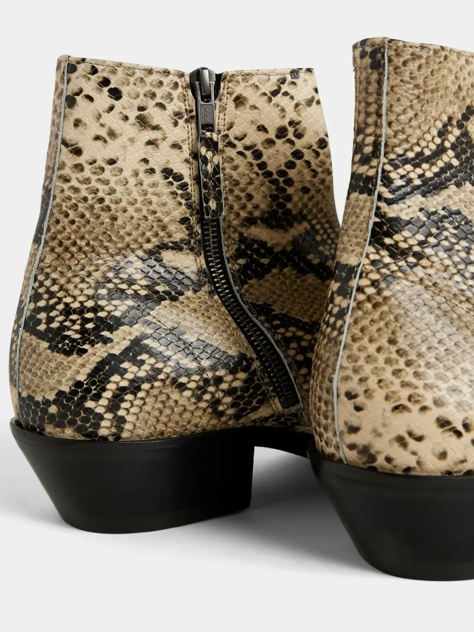 Våg En Dristig Look Med Våre Wyatt Snake Boots, En Blanding Av Western-Inspirert Design Og Urban Stil. Disse Støvlene Er Laget I Imitert Pytonskinn Produsert I Italia, Og Har En Praktisk Glidelås På Innsiden For Enkel Bruk. Den Tilpassede Sålen Har En Cubansk Hæl, Som Gir Et Snev Av Raffinement Til Spaserturen Din.
