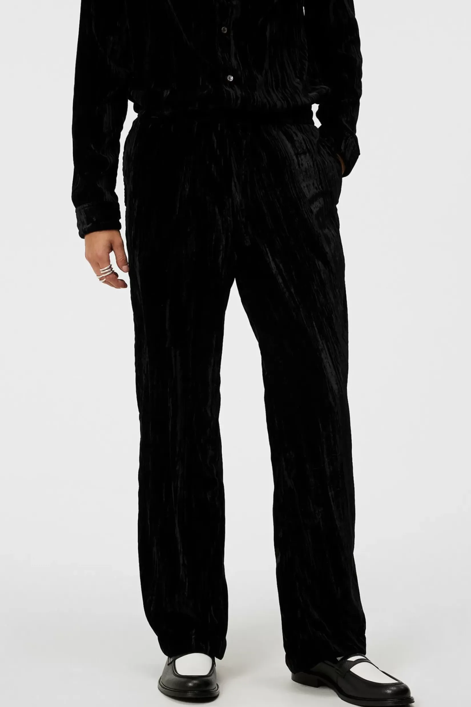 Disse Noah Wide Velvet-Buksene Er Laget Av Skinnende, Rynket Fløyelsstoff. Kuttet I Vide Ben Med En Avslappet Passform Og Festet Med Snøring I Midjen. Bruk Dem Med Vår Pj Velvet Shirt For Et Matchende Sett.