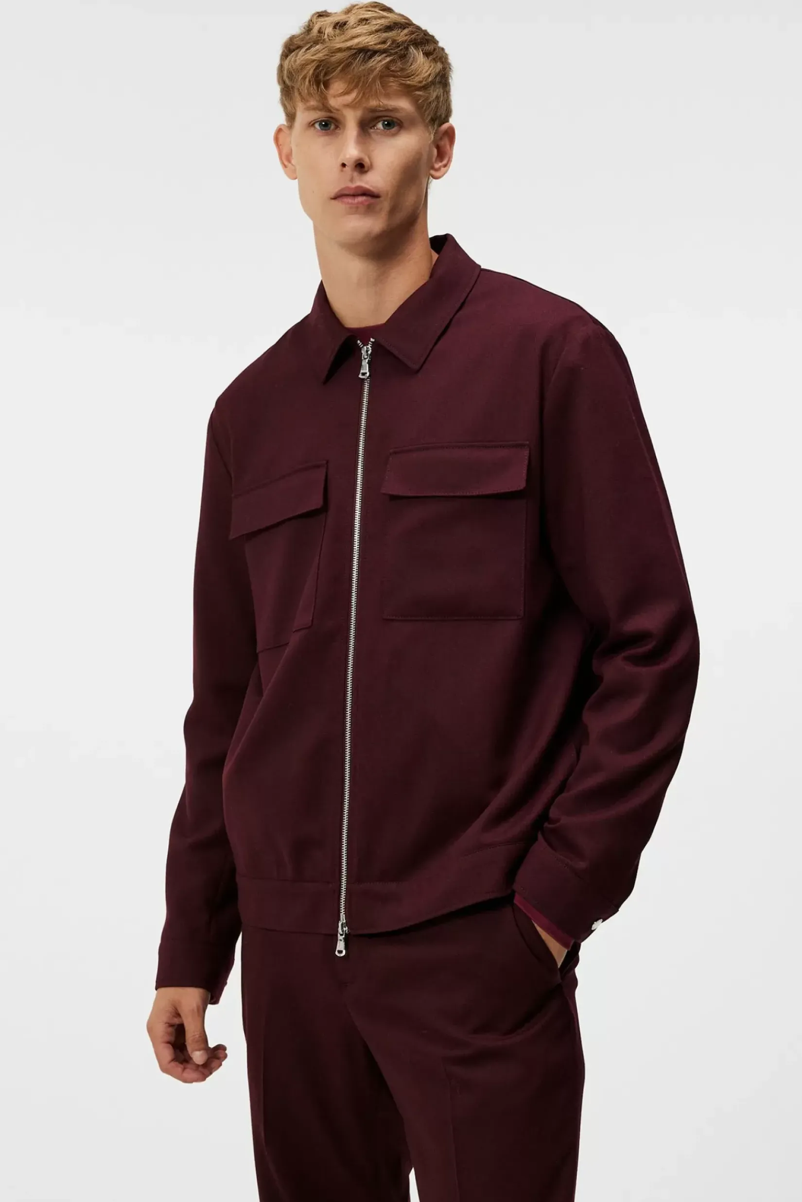 Jarod Wr Flannel Overshirt Er Laget Av En Myk, Ullblanding, Stretchflanell Behandlet Med En Flekk- Og Vannavstøtende Finish. Den Er Detaljert Med En Klassisk Skjortekrage Og Fremhevet Med To Brystlommer Med Klaff, Sølvfarget, Toveis Merkeglidelås Foran, Og Justerbare Mansjetter Med Merkede Sølvpresseknapper. Bruk Den Med Lois Wr Flanell Pants For Et Smart Uformelt Antrekk.