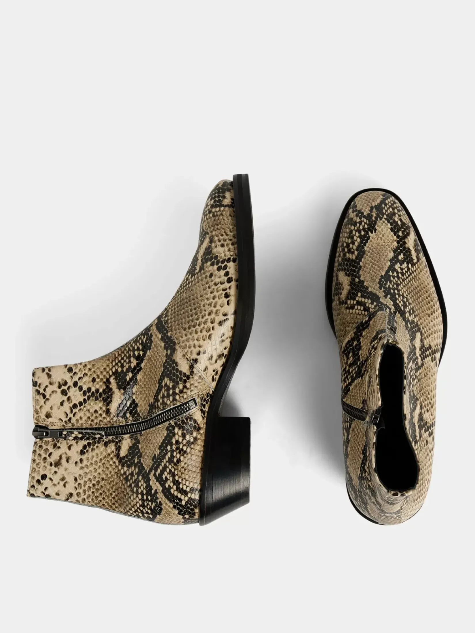 Våg En Dristig Look Med Våre Wyatt Snake Boots, En Blanding Av Western-Inspirert Design Og Urban Stil. Disse Støvlene Er Laget I Imitert Pytonskinn Produsert I Italia, Og Har En Praktisk Glidelås På Innsiden For Enkel Bruk. Den Tilpassede Sålen Har En Cubansk Hæl, Som Gir Et Snev Av Raffinement Til Spaserturen Din.