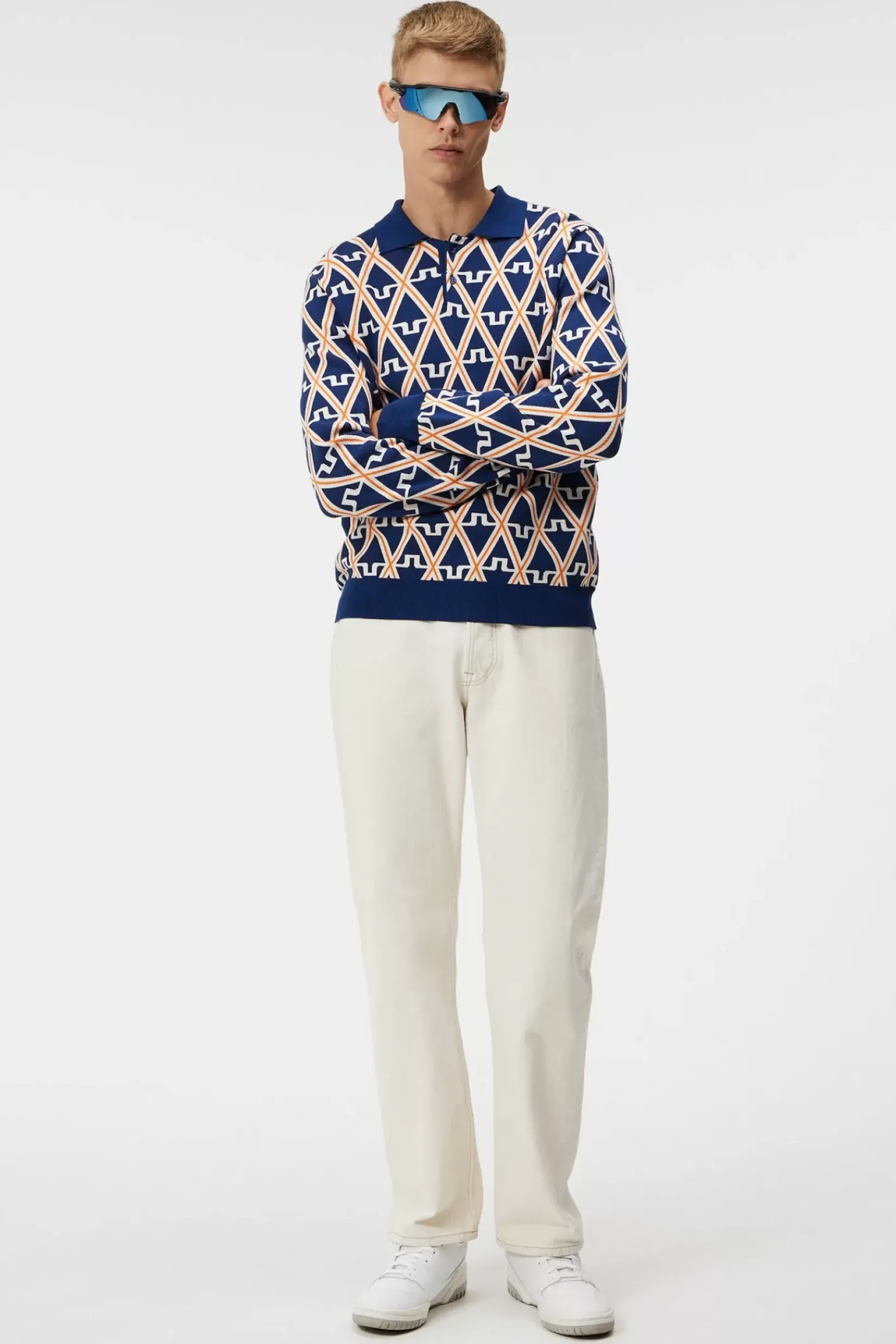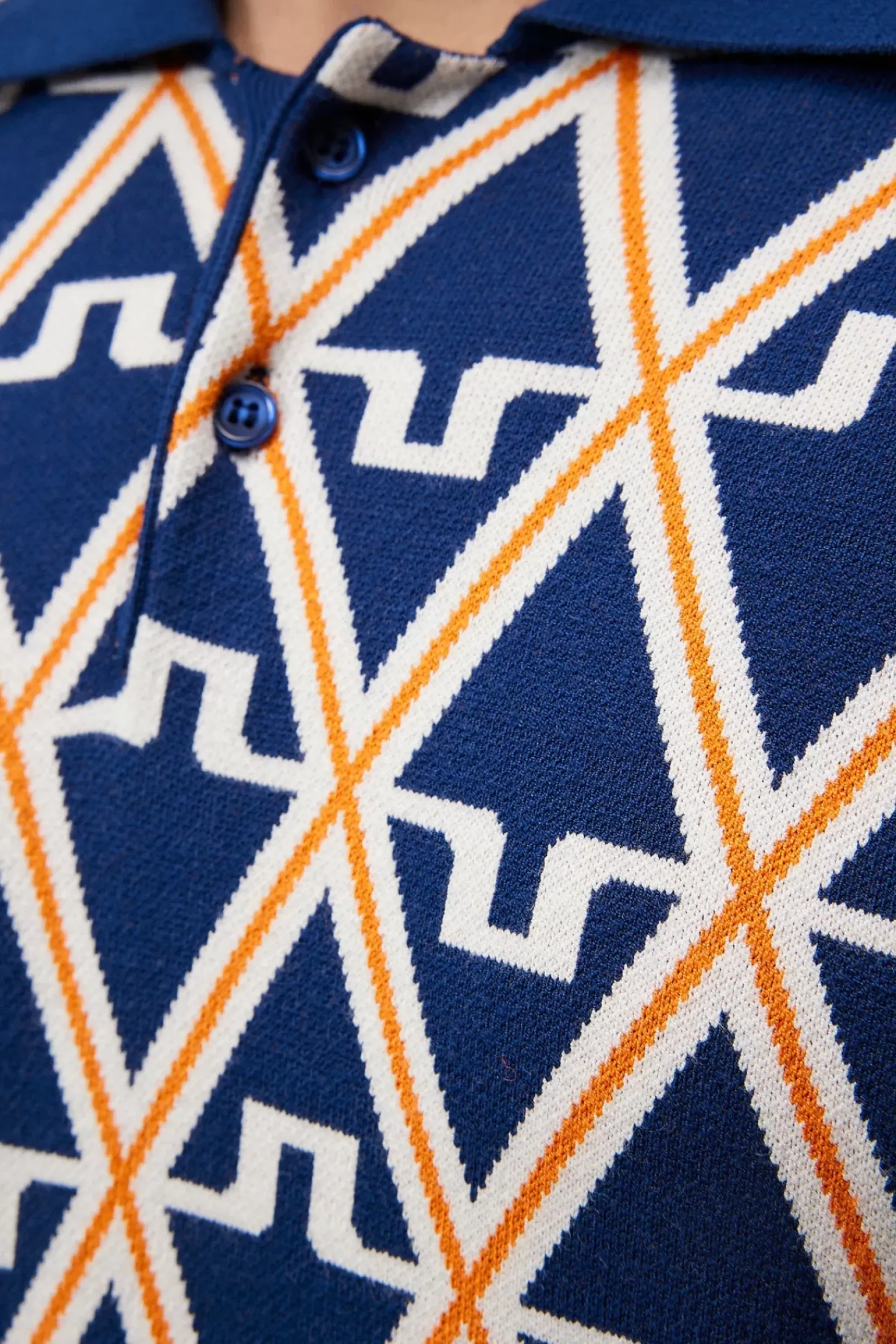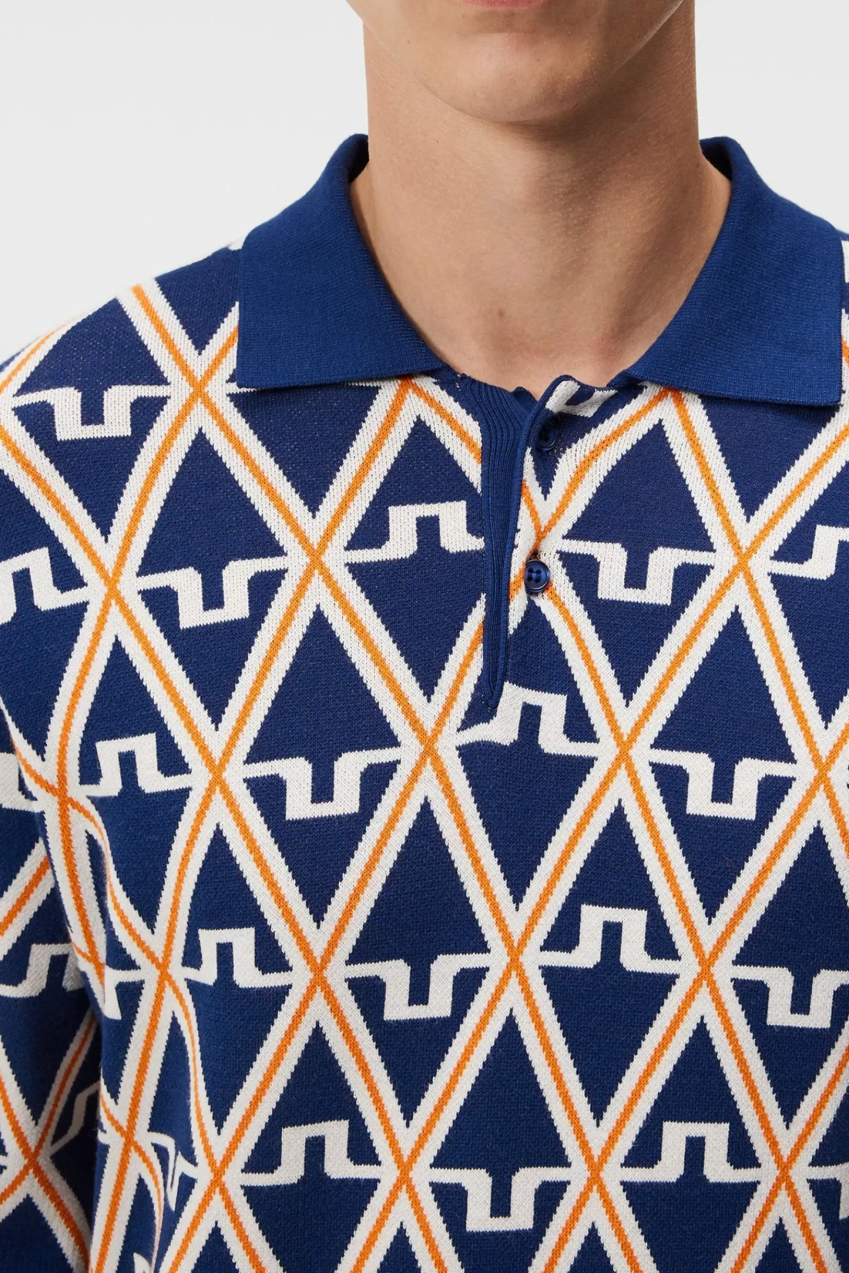 Vår Benny Knitted Pologenser Er Et Allsidig Mellomlag Designet For Å Se Bra Ut Enten Du Har Den På Eller Over Skuldrene. Den Kombinerer Vår Karakteristiske Bridge-Logo Med Diamant-Jacquardmønster For Et Helt Unikt Sesongmessig Utseende. Strikket Av Oeko-Tex®-Sertifisert Viskose-, Rayon- Og Polyestergarn, Er De Strikkede Benny-Skjorten Myk Og Elastisk For Maksimal Komfort. Den Holder Deg Varm I Kjølig Vær, Og Bæres Over Skuldrene Når Dagen Blir Litt Varmere.